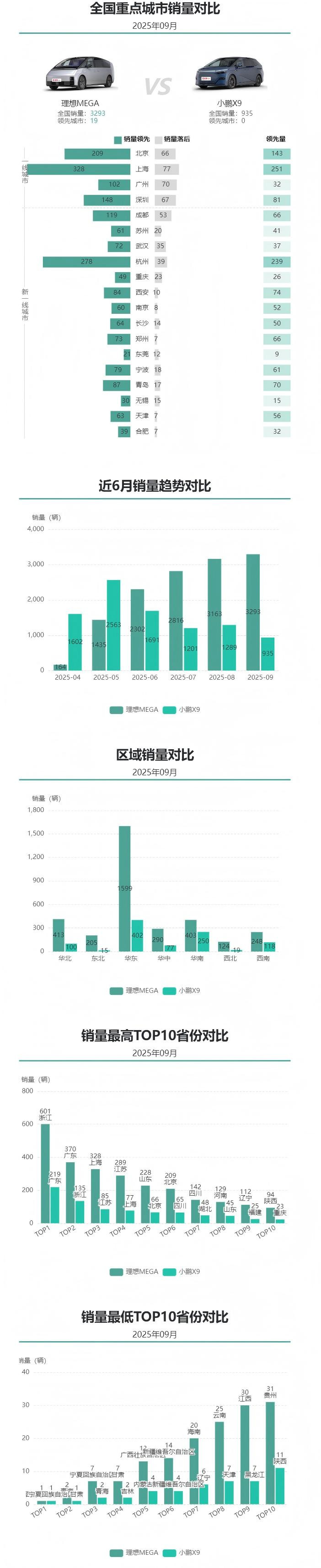 与理想L6碾压岚图、宏光MINIEV统治微型车市场不同,MEGA和X9的全国销量比较悬殊,但在城市覆盖差距不会特别悬殊。